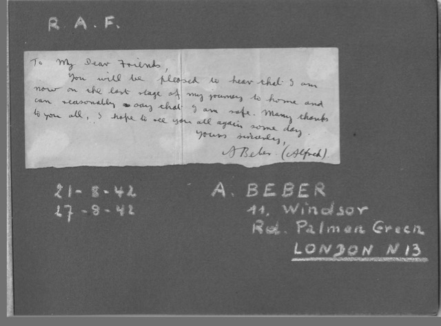 | Informations complémentaires : | Rapport d’évasion SPG 900 (non disponible) ... Beber retrouve à une gare de Bruxelles Davies (fiche A047), Haydon (fiche A046), et Fox (fiche A048). Avec deux guides et en deux groupes, ils se rendent à Paris par le train, via Lille et Amiens. Les tickets sont achetés par étapes. Avant de partir de Bruxelles, un policier militaire allemand contrôle toutes les cartes d'identité, ce qui est nouveau selon les guides. Les douaniers belges sont laxistes par rapport aux français, et les aviateurs ont l'impression qu'ils sont de connivence. A l'arrivée à Paris, le groupe va par métro dans un quartier d'appartements près du boulevard des Invalides, où il loge quelques nuits. Jeanine DE GREEF revient à Paris avec Andrée DE JONGH le 03 septembre, et logent au 10 rue Oudinot. Elles prennent en charge le groupe des deux Anglais et deux Australiens et les guident, jusque la ferme de Urrugne pour Jeanine dont c'est la première mission. Ils se rendent en train à Saint-Jean-de-Luz, où ils logent tous dans un flat près de la gare (chez Ambrosio SAN VICENTE). De là, ils vont dans une ferme où ils rencontrent leur guide pour la traversée des Pyrénées, accompagnés de Andrée DE JONGH et "Bee" JONSON, qui apprend le trajet. Le soir, le groupe part en montagne. Ils rencontrent des policiers espagnols sur une route, juste après la Bidassoa. Suite à la confusion, le groupe se reforme sans Davies, et ne l'y retrouve que chez le consul à San Sebastian. Ils sont tous conduits en voiture à Madrid, où ils logent 10 jours à l'ambassade. Ils atteignent Gibraltar le 21 septembre 1942. |